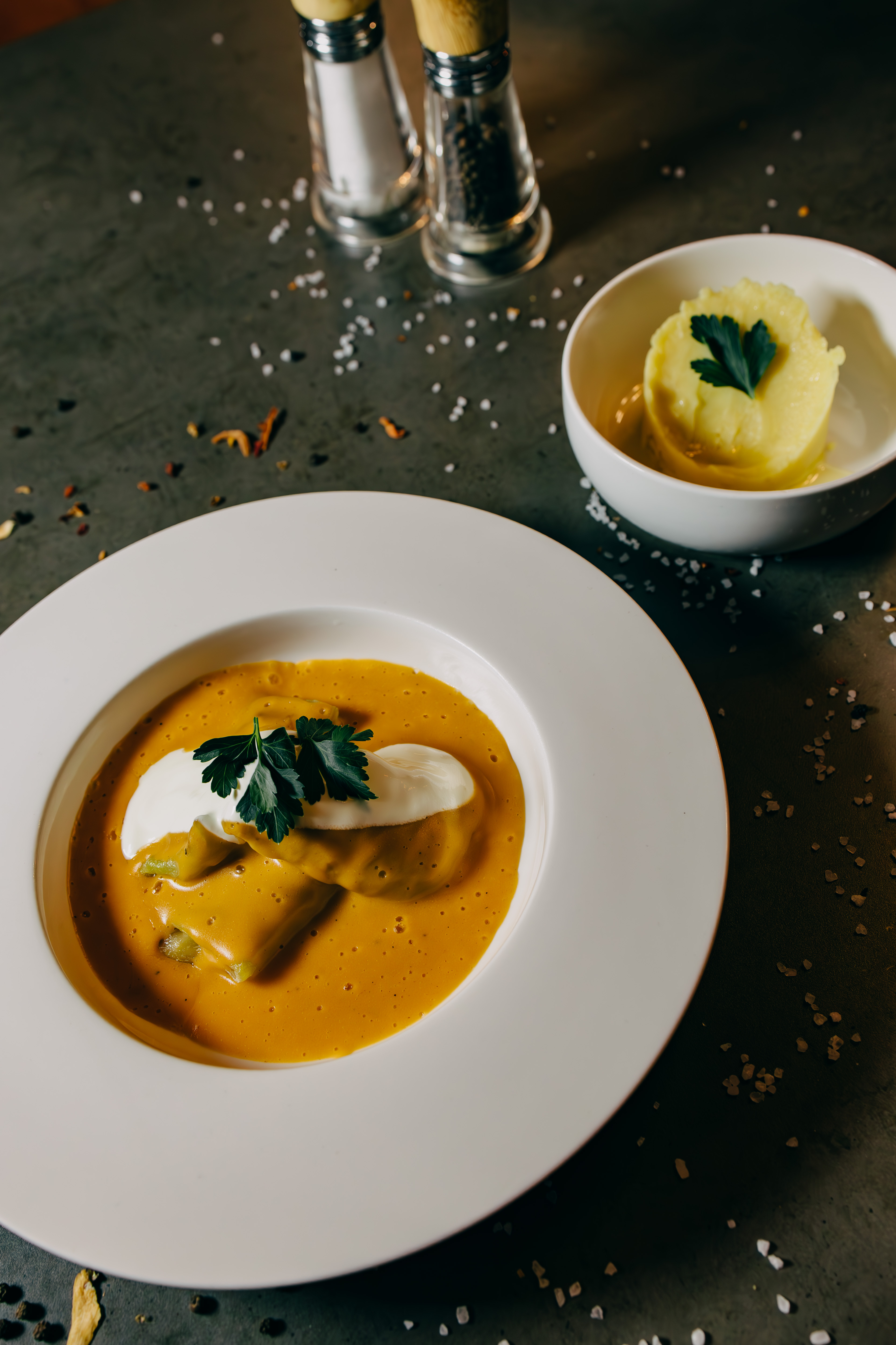 (шампиньоны, белые грибы, картофель, лук, молоко, масло трюфельное)